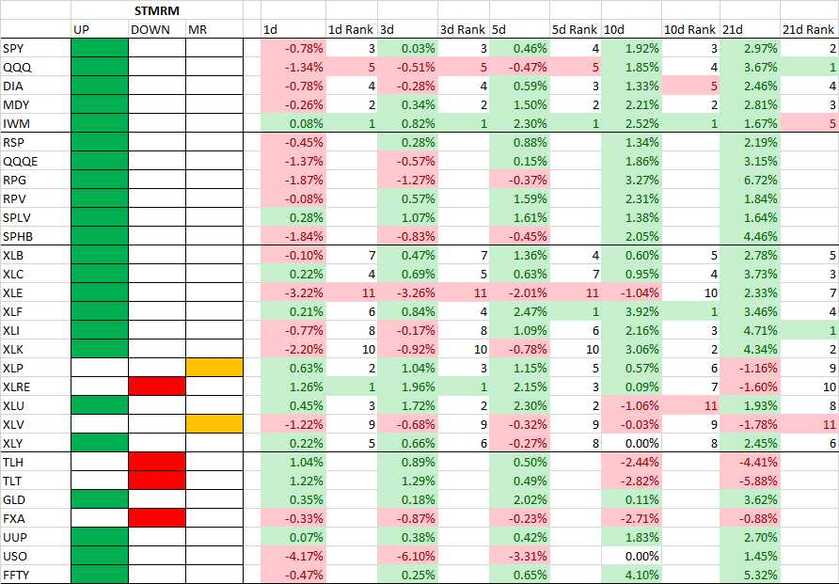 All of the major indices, all of the style indices and 8/11 sectors are in short-term UP regimes. The medium-term regime dashboard looks very similar.