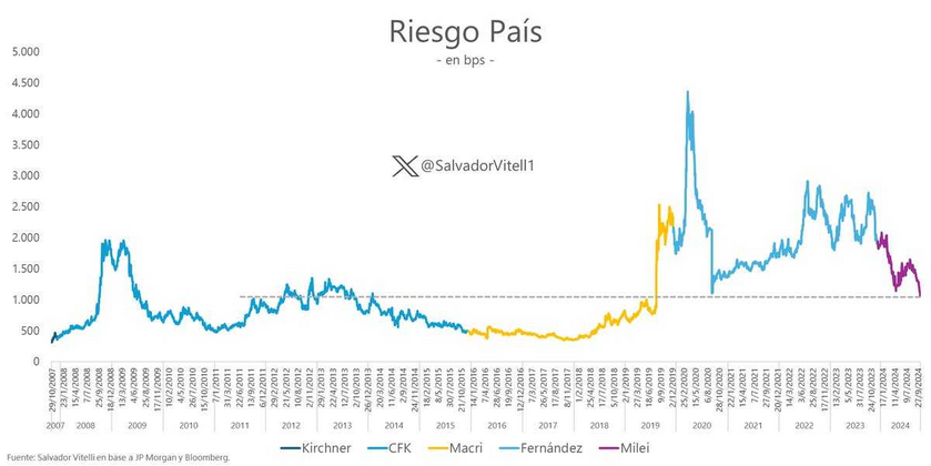 Meanwhile the fundamental backdrop in Argentina continues to improve. Argentina's credit spread dropped to 1,059 bps today, the lowest level in more than 5 years.